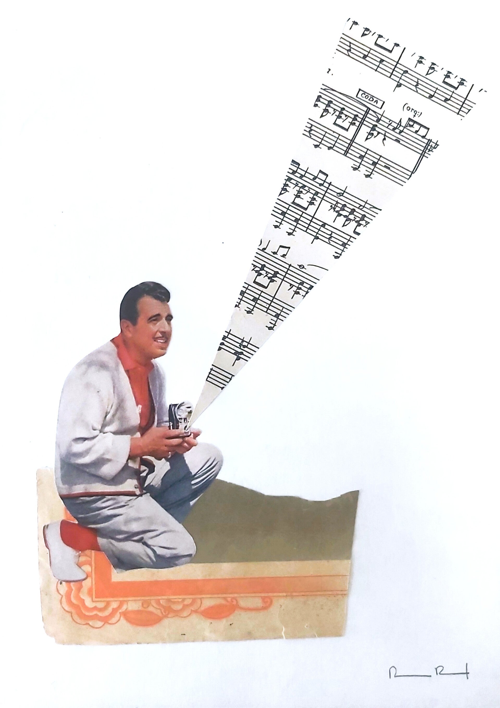Collage hecho a mano con imágenes originales de una revista de cine de los años 50. Pieza única.